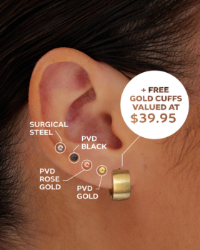 Receive a free pair of gold cuff earrings valued at $39.95 with any piercing
